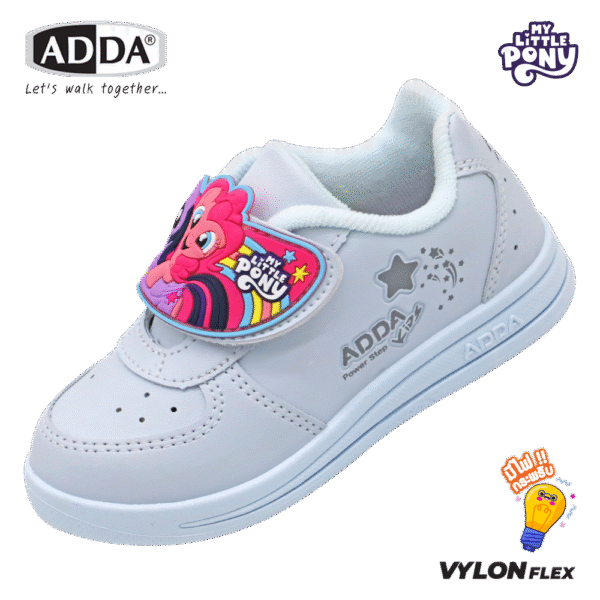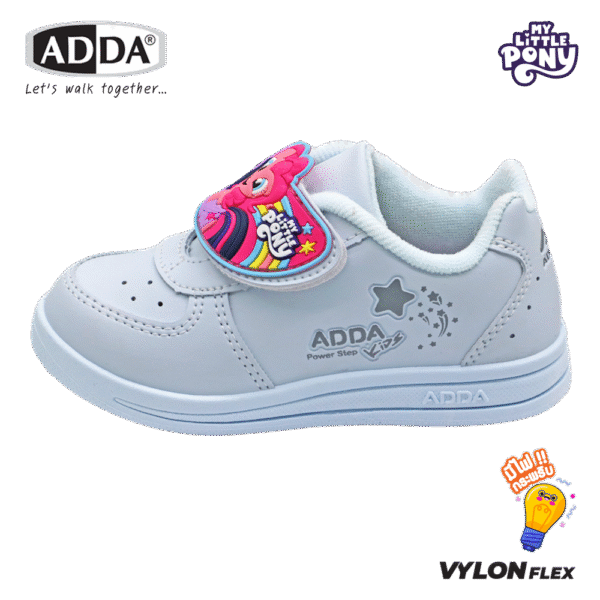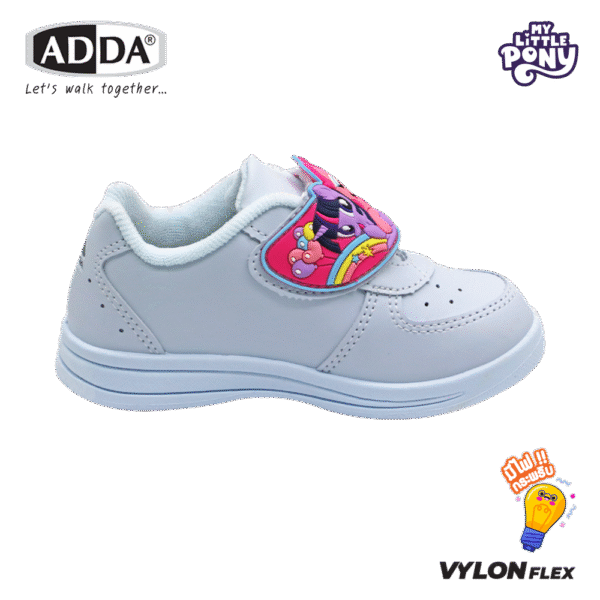ADDA รองเท้านักเรียนสีขาว เด็กผู้หญิง มีไฟกระพริบ ลายโพนี่ My Little Pony ลิขสิทธิ์แท้ รุ่น 41G3AB1C1 (ไซส์ 25-35)